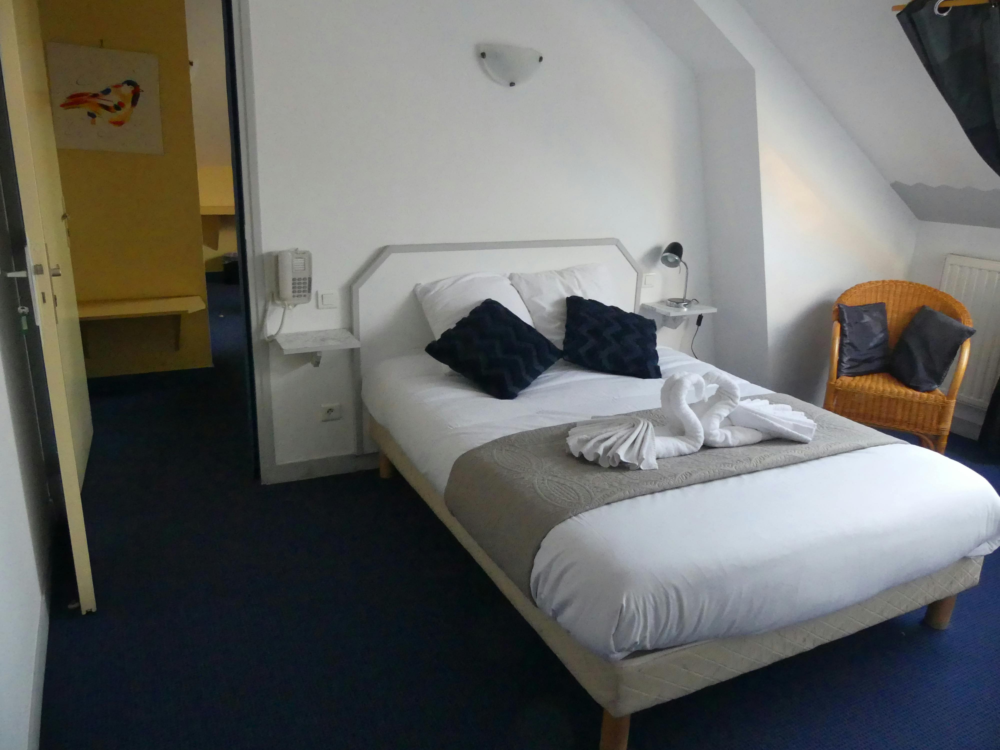 Spacious and welcoming, the family room is ideal for family stays. It has one double bed and two single beds, allowing everyone to enjoy their own space in a warm environment. Its functional layout with two connecting rooms guarantees a comfortable and peaceful stay for young and old alike.